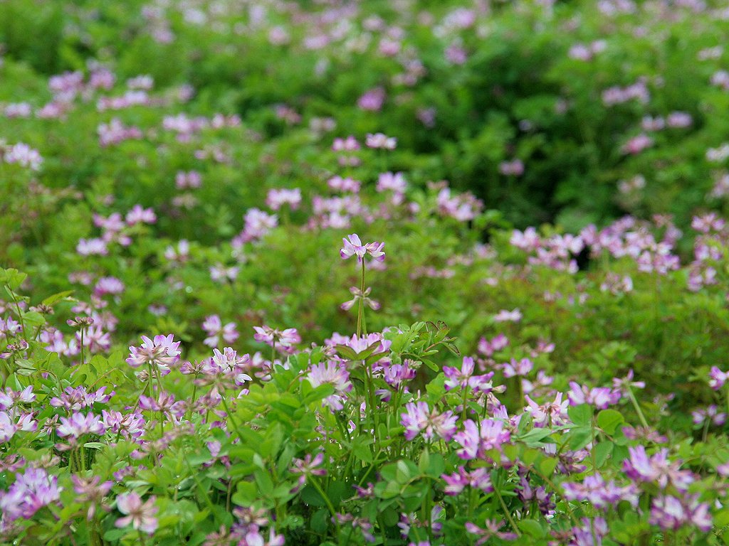 マメ科の植物には根粒菌が共生していて、大気中の窒素を直接利用できます。昔は、秋にレンゲの種を撒いて、春に土に鋤きこんで肥料として利用しました。鉄町の田圃の一部では、今でもこの自然農法を残しています。