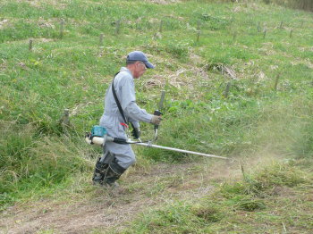 10/9(土)が雨のため23日(土)に鉄町高水敷緑地の整備をしました。夏草ほど硬くはありませんが、柔らかい草は刈り払い機に絡み付いて別な意味でやりにくいものです。