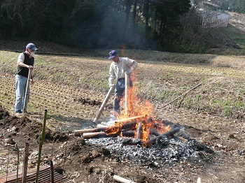 この日は「恩田の谷戸ファンクラブ」の皆さんの活動日と重なり当会からは竹で焼いた焼き芋、先方からは恩田の黒米と野菜たっぷりの鍋を提供いただき、おいしく食しました。