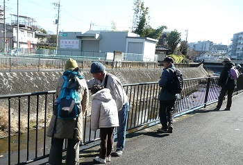 2/13(日)鶴見川の支流早淵川(中村橋〜境田橋の区間)で野鳥観察会を実施しました。小学校のお子さんを含め10名、穏かな日差しの中和気あいあいの