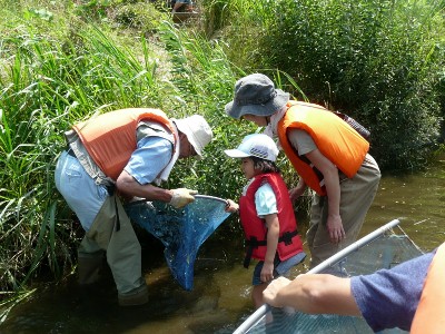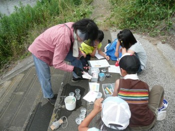 市ヶ尾鉄橋脇で生き物調査をしました。今年は活動日が雨にぶつかり今年初めての魚とりです。