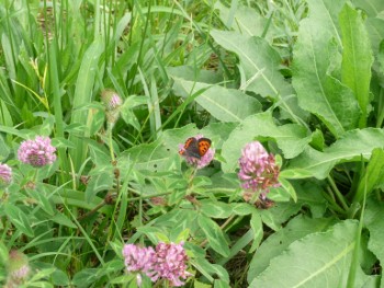 ムラサキツメクサはベニシジミの蜜源であるとともに幼虫の食草でもあります。