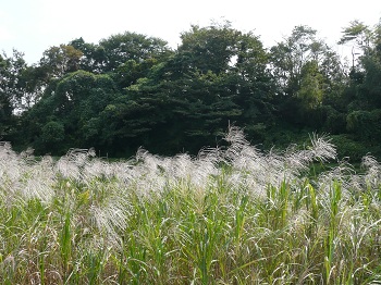10/8(土)土手の草刈をしました。今年は何年ぶりかの台風で葉が傷んでしまい心配しましたが、例年どおり立派な花穂をだしました。