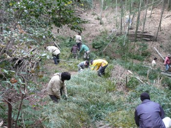 1/15(日)鴨池公園愛護会の新年会に参加、いかだ遊び用の孟宗竹を頂きました。
