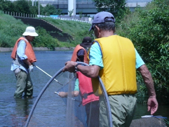 8月25日(土)田園都市線鉄橋下で定例の生き物調査と水質検査を実施しました。