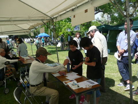 5/11(日)小山田緑地で開催された源流祭に参加。各団体が日頃の活動記録や鶴見川の生き物などを展示しました。