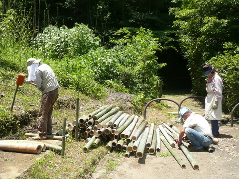 ”いかだ”を組む孟宗竹の乾燥