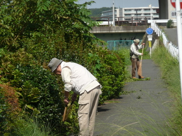 9/27(土)秋に向かい、夏の間じゅうに伸びた、旧青葉区役所別館前の河川管理道路(サイクリング道路)脇の植栽を整理ました。