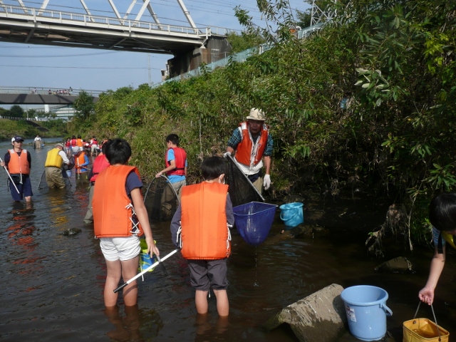 10/24(土)田園都市線市が尾鉄橋下で今年最後の川の生きものしらべをしました。