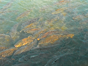 になると支流の合流点など岸の近くに集まってきますのでコイを見る機会が多くなります。コイの多くは自治体や市民グループが環境啓蒙活動の一環で放流した