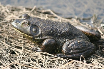 定外来種。別名ショクヨウガエルとも呼ばれ、現在も食用とされています。食用として移入されたものが逃げ出して野生化、環境問題となっています。非常に大